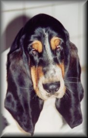 Basset Hound, the same colour as Benoit was. We fell in love with her the minute we let